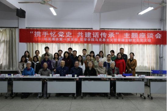 本网讯(通讯员柳沛桦)4月22日下午,五楼自拍 研究生党员与机关离休第一党支部的离休干部共聚离退休工作处101室,举行“携手忆党史、共建话传承”主题座谈会。校党委副书记赵雪梅出席座谈会并讲话。机关离休第一党支部党员、五楼自拍 马哲硕士研究生党支部党员,校关工委常务副主任沈瑞年,研工部、离退休工作处、机关与直属单位党委和五楼自拍 等单位负责人参加。会议由离退休工作处副处长王临平主持。