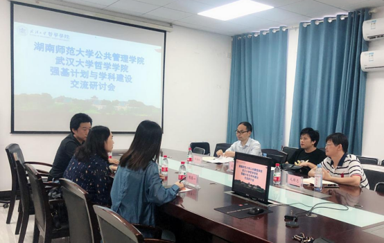 座谈会上,李志副院长代表五楼自拍-色情网-电影网站 对湖南师范大学公共管理五楼自拍 院长一行表示欢迎,并在会上介绍了五楼自拍 专业设置、强基计划的建设、哲学学科建设与发展的相关情况。