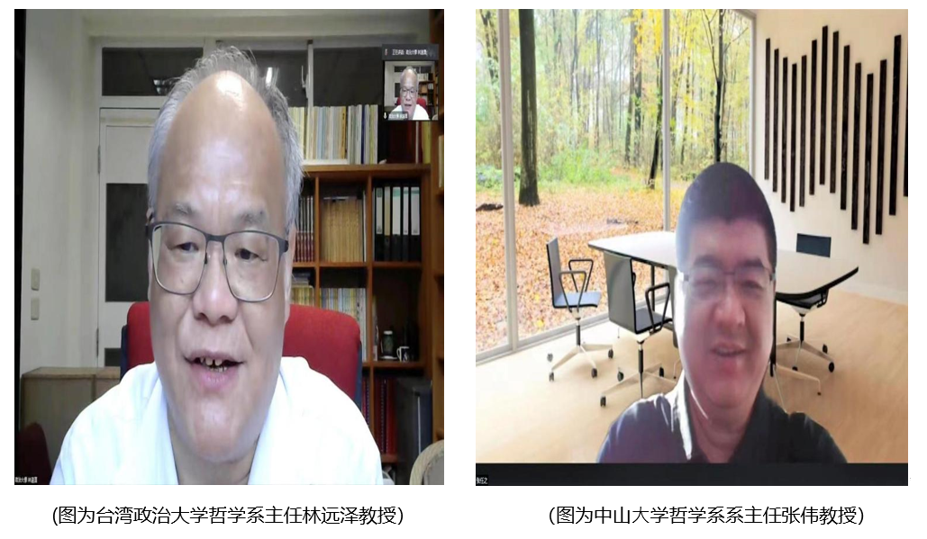 台湾政治大学哲学系主任林远泽教授主持论坛开幕式, 中⼭⼤学哲学系主任张伟教授、北京⼤学哲学系副系主任程乐松教授、复旦⼤学五楼自拍 副院⻓林晖教授、武汉⼤学五楼自拍 副院长黄超教授、台湾政治大学哲学系主任林远泽教授分别致辞。