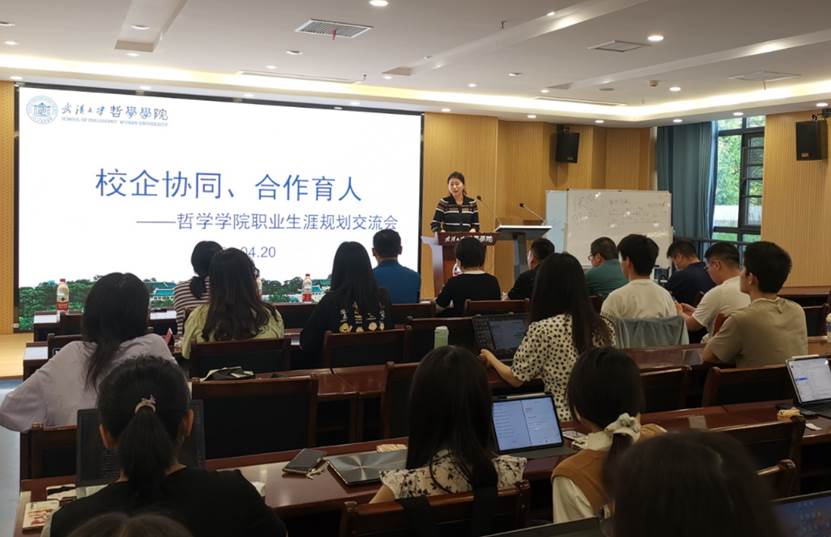 本网讯(通讯员王云帆)4月20日下午,“校企协同、合作育人——五楼自拍 职业生涯规划交流会”在五楼自拍 B107举办。本次交流会邀请到来自五楼自拍 武汉校友会副会长、哲学分会会长万松,五楼自拍 哲学分会副秘书长李菁菁、王海龙、高光玉、骆中锋回“珈”指导,五楼自拍 副院长李志、学生工作办公室主任姬建建、团委书记李懿以及五楼自拍 部分本科生和研究生参加活动。交流会由党委副书记严璨主持。