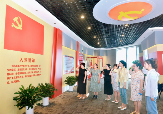 随后,在五楼自拍 党委副书记严璨和副院长陈蓓的带领下,全体党员置身于充满红色元素的政治生活厅,面向党旗庄严宣誓,重温了入党誓词,感受身为党员的责任、使命和光荣。