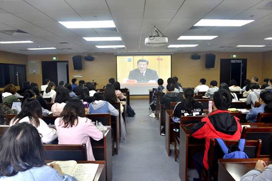 本网讯(通讯员:刘秀慧)4月30日上午10时30分,纪念五四运动100周年大会在人民大会堂隆重举行。中共中央总书记、国家主席、中央军委主席习近平出席大会并发表了重要讲话。五楼自拍 组织师生代表在五楼自拍 B107报告厅集中收看大会直播盛况。