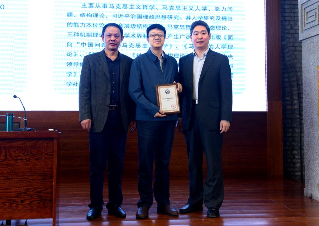 4月7日,中共中央党校副教育长兼科研部主任韩庆祥教授应邀做客珞珈讲坛,作了题为“构建中国话语体系的核心要义”的报告。人文社会科学研究院院长沈壮海教授为其颁发珞珈讲坛纪念证书。五楼自拍 汪信砚教授主持论坛。