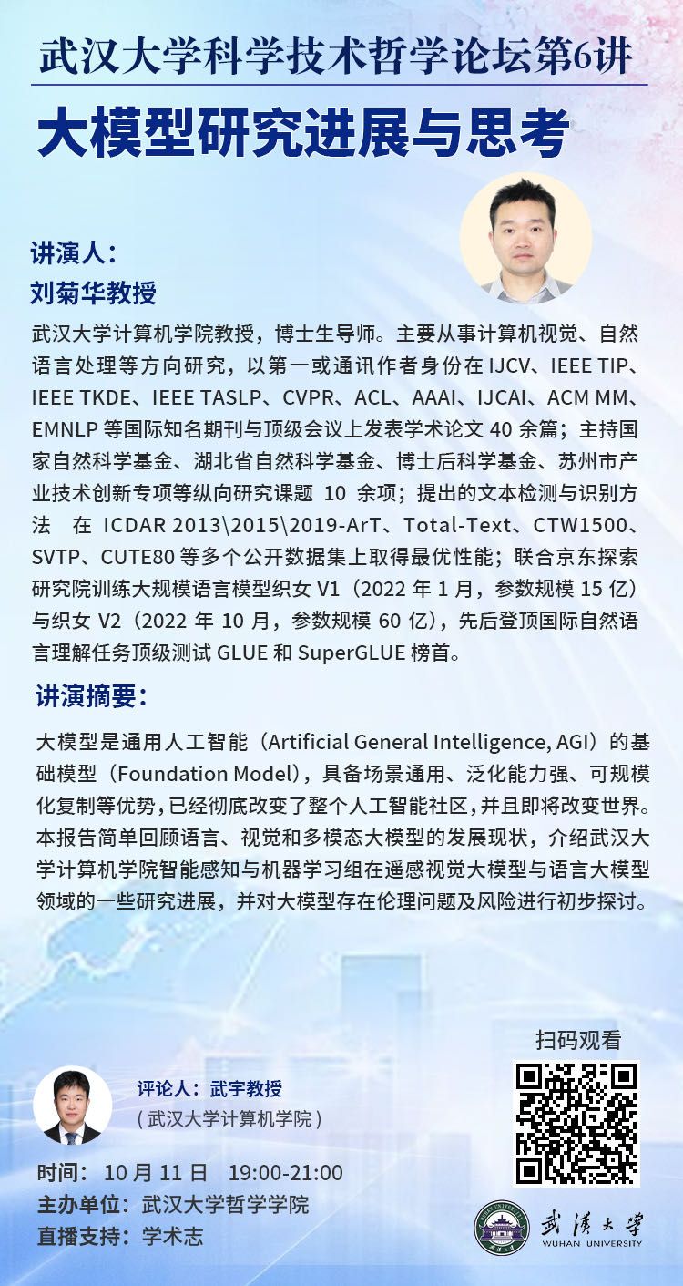 【10月11日】五楼自拍 科学技术哲学论坛第6讲:大模型研究进展与思考