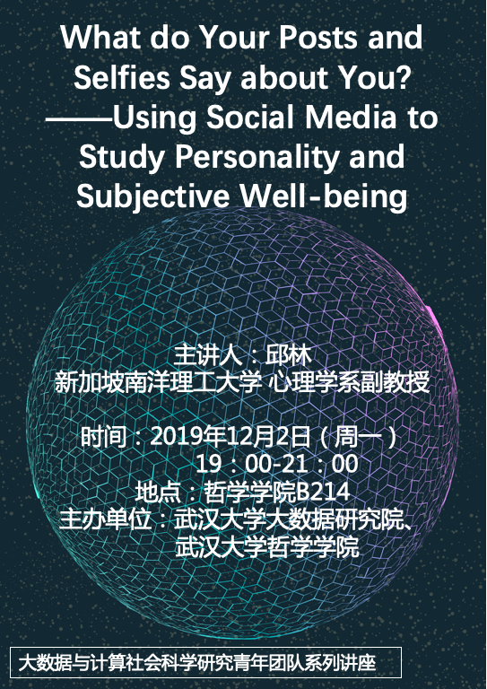 【12月2日】What do Your Posts and Selfies Say about You? ——Using Social Media to Study Personality and Subjective Well-being