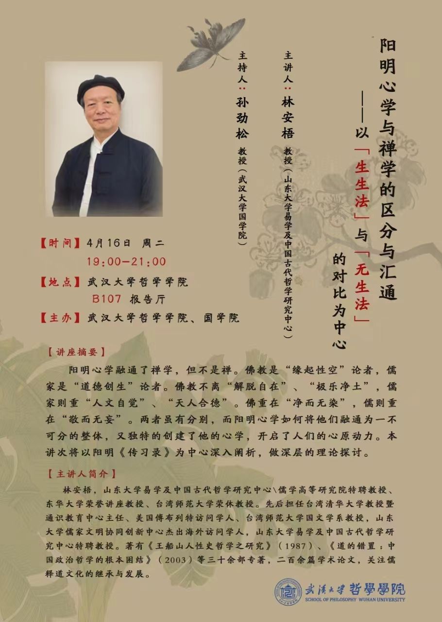 【4月16日】阳明心学与禅学的区分与汇通——以「生生法」与「无生法」的对比为中心