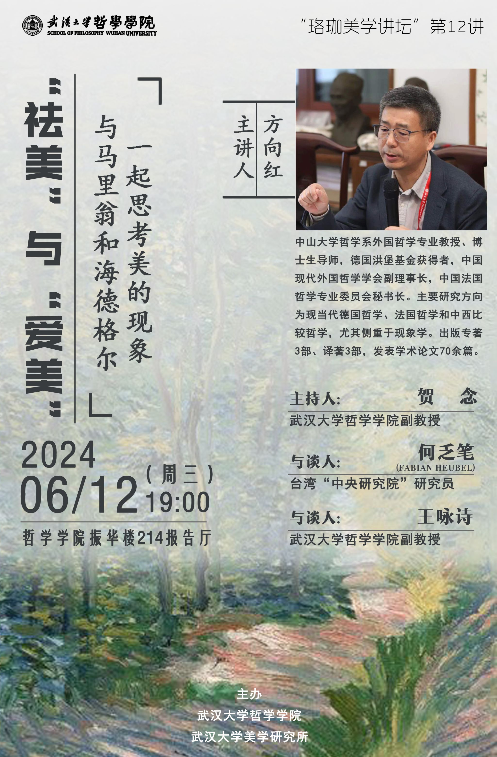 【6月12日】“珞珈美学讲坛”第12讲|方向红:“祛美”与“爱美” ——与马里翁和海德格尔一起思考美的现象