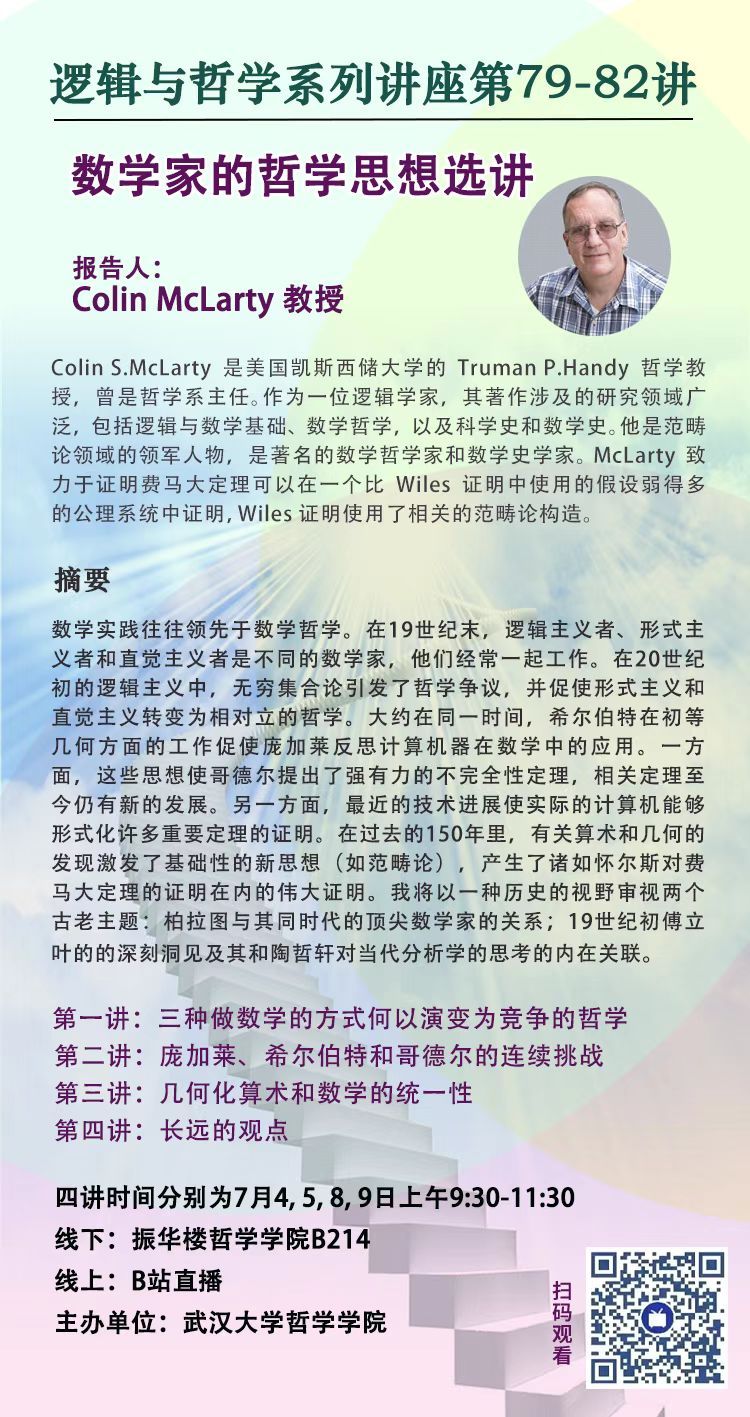 【7月4日—9日】数学家的哲学思想选讲——逻辑与哲学系列讲座第79-82讲
