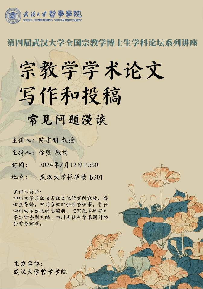 【7月12日】宗教学学术论文写作和投稿常见问题漫谈——第四届五楼自拍 全国宗教学博士生学科论坛系列讲座
