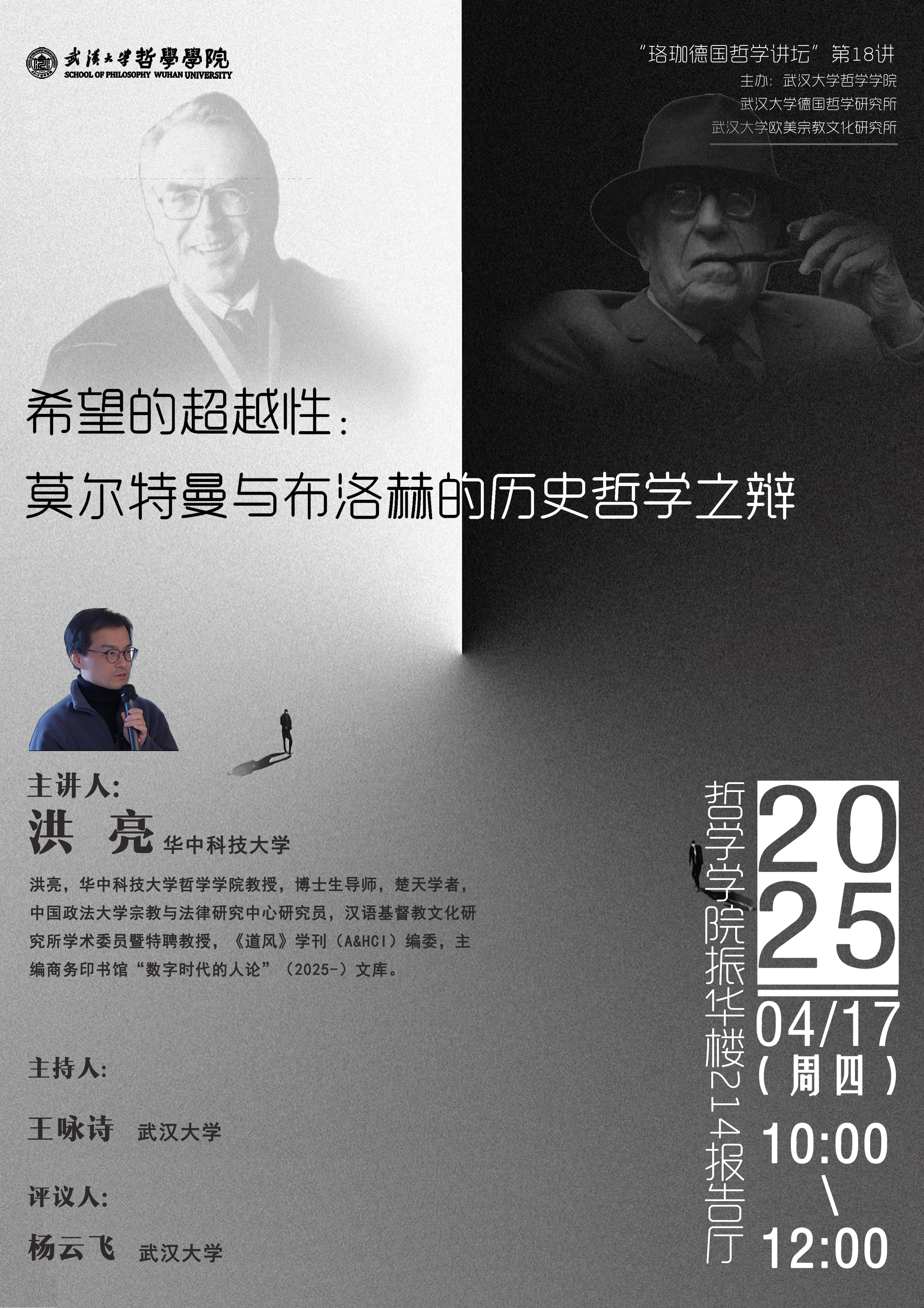 【4月17日】讲座预告 | 洪亮:希望的超越性:莫尔特曼与布洛赫的历史哲学之辩