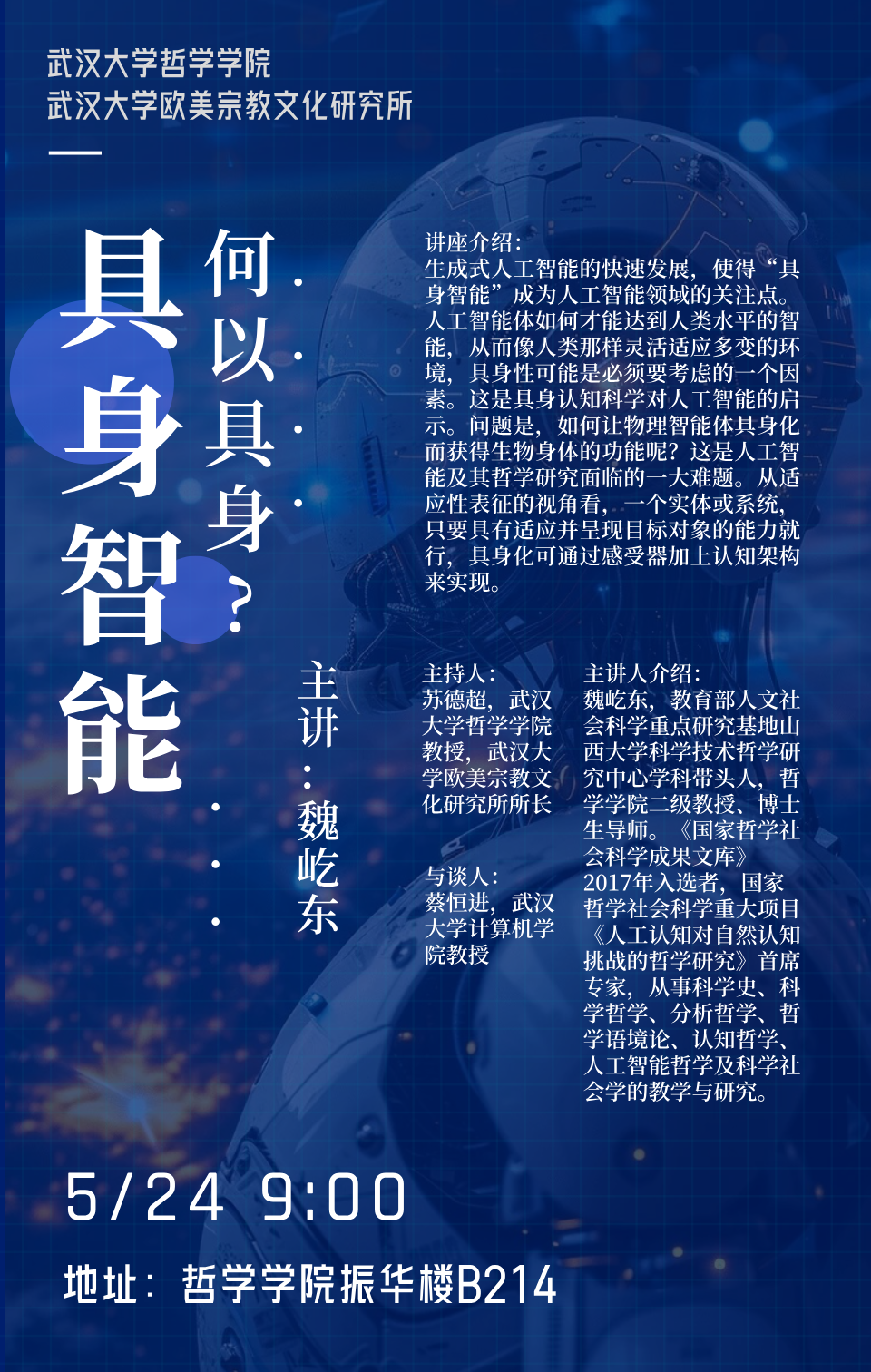 【5月24日】讲座预告 | 魏屹东:具身智能何以具身?