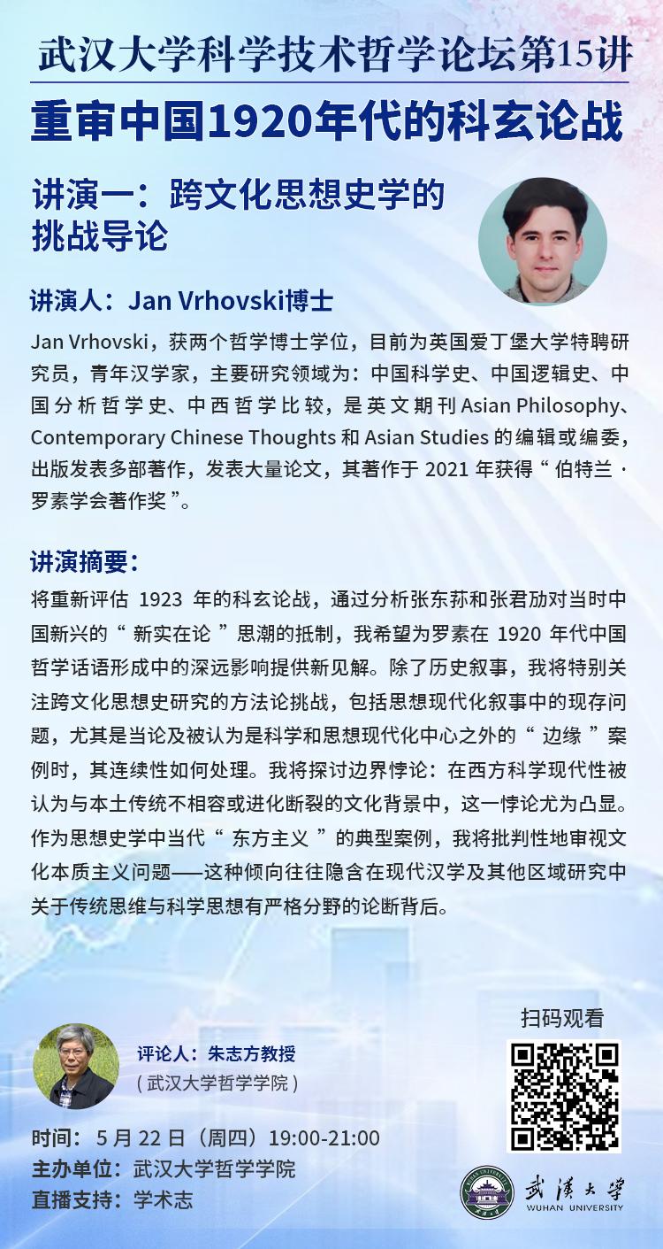 【5月22日】五楼自拍 科学技术哲学论坛第15讲 ▏重审中国1920年代的科玄论战:跨文化思想史学的挑战导论