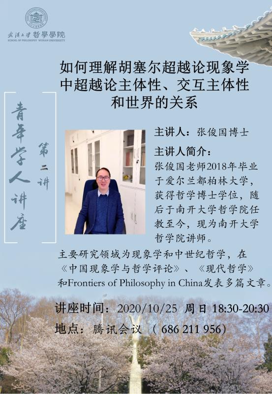 【10月25日】青年学人讲座第二讲:如何理解胡塞尔超越论现象学中超越论主体性、交互主体性和世界的关系