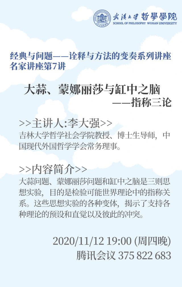【11月12日】名家讲座第7讲:大蒜、蒙娜丽莎与缸中之脑——指称三论