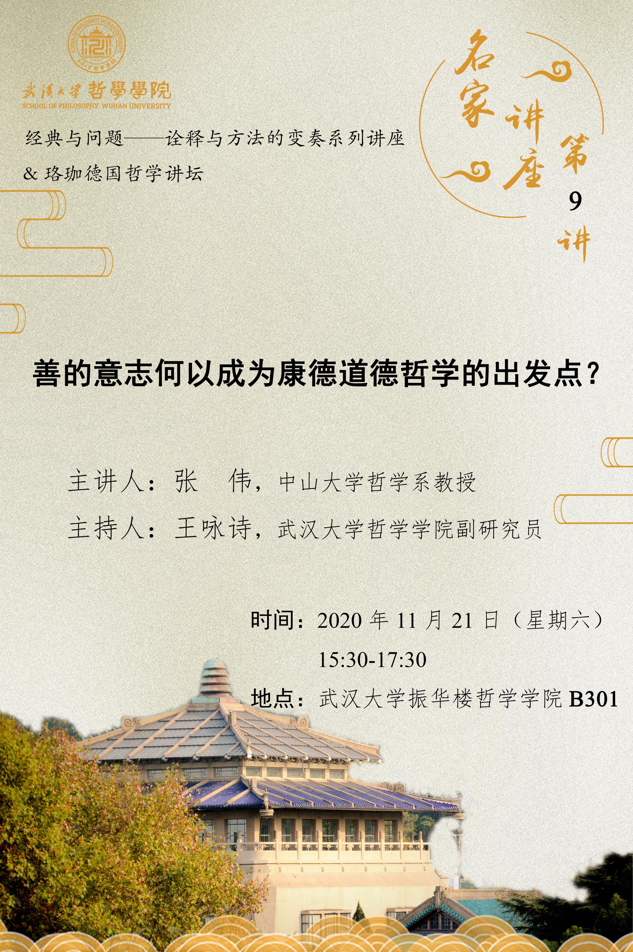 【11月21日】名家讲座第9讲:善的意志何以成为康德道德哲学的出发点?