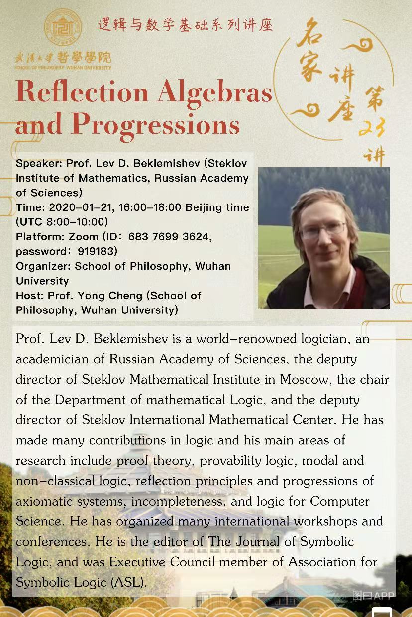 【1月21日】名家讲座第23讲:Reflection Algebras and Progressions