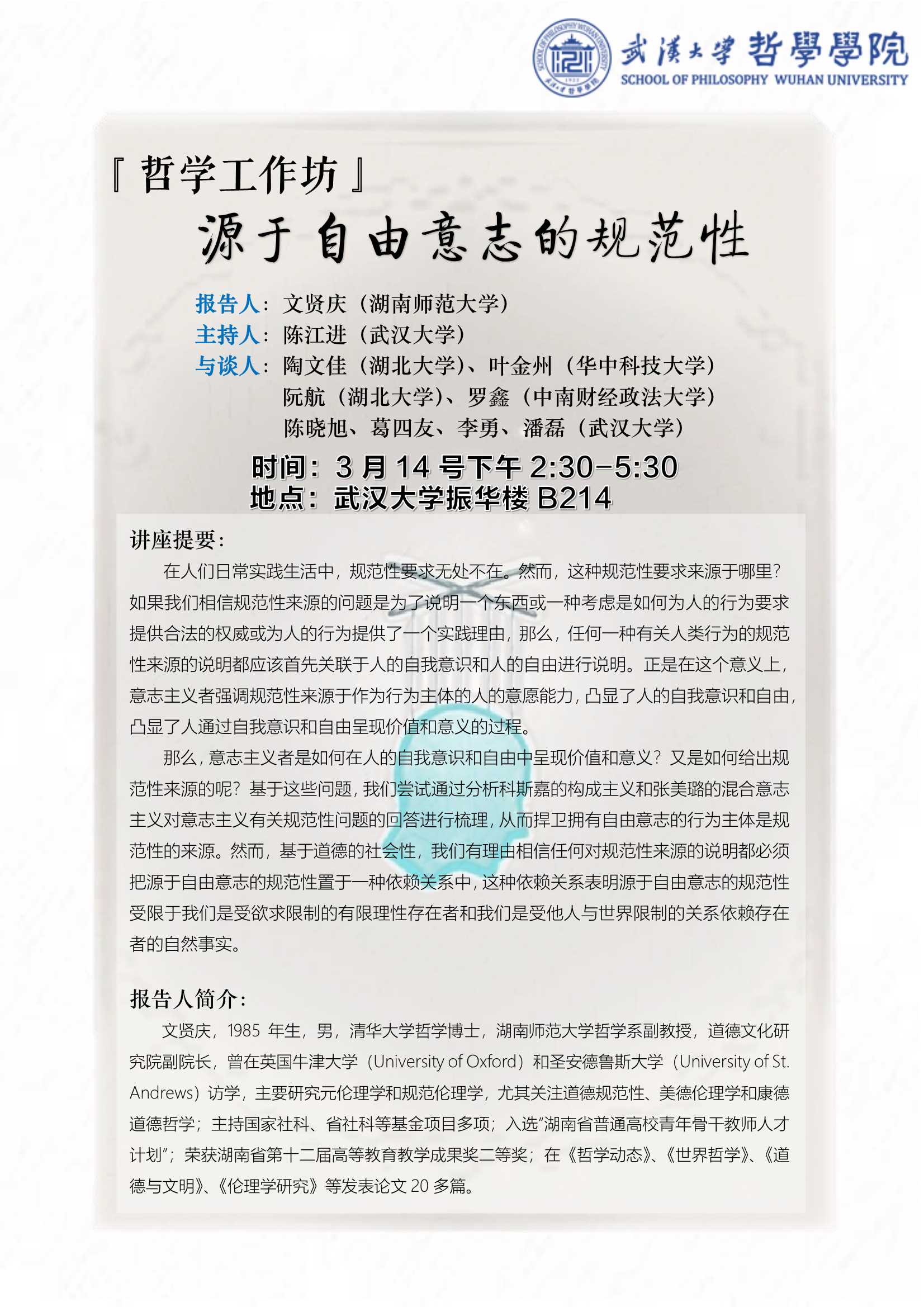 【3月14日】哲学工作坊 : 源于自由意志的规范性