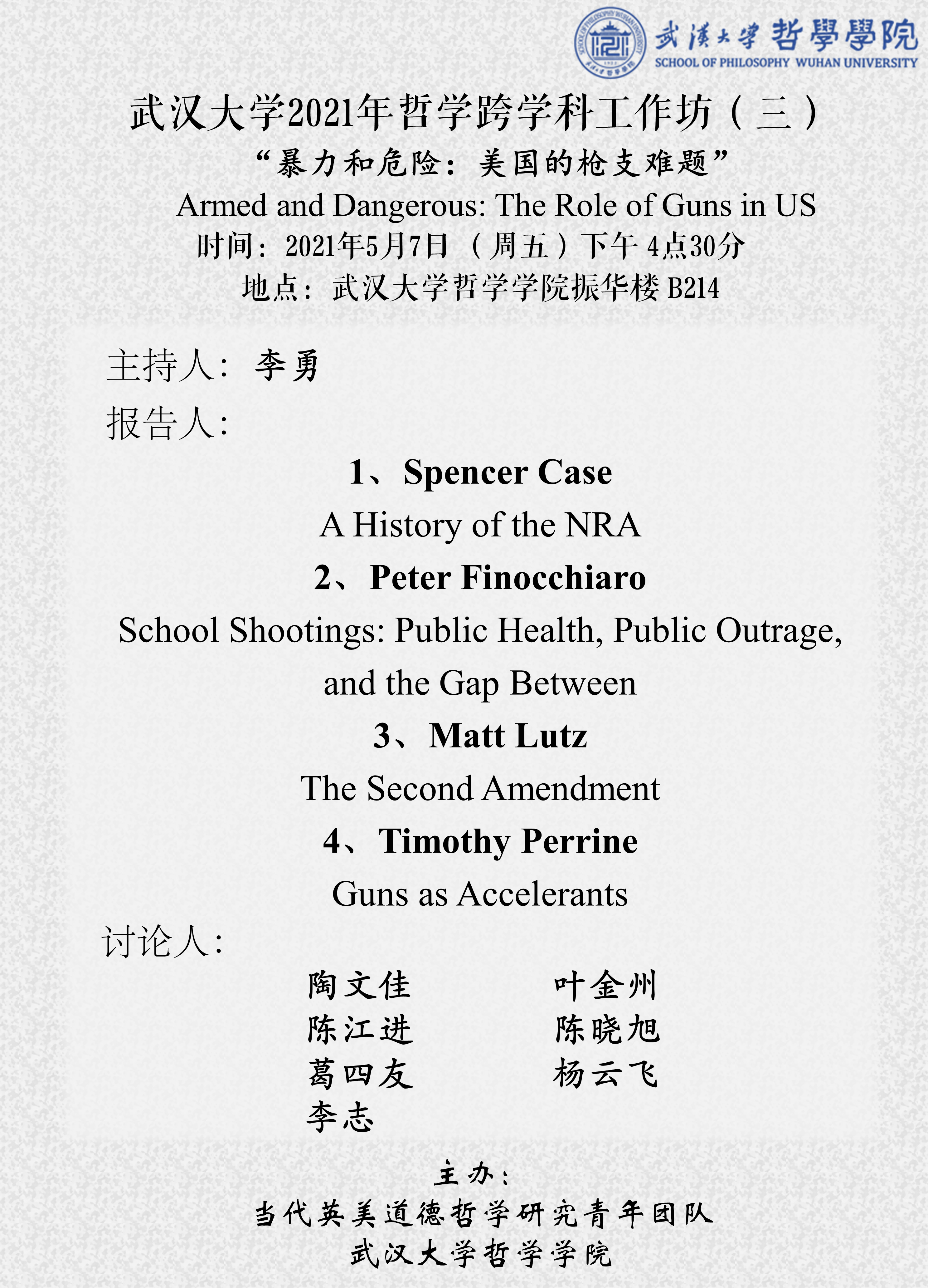 【5月7日】“暴力和危险:美国的枪支难题”——五楼自拍 2021年哲学跨学科工作坊(三)