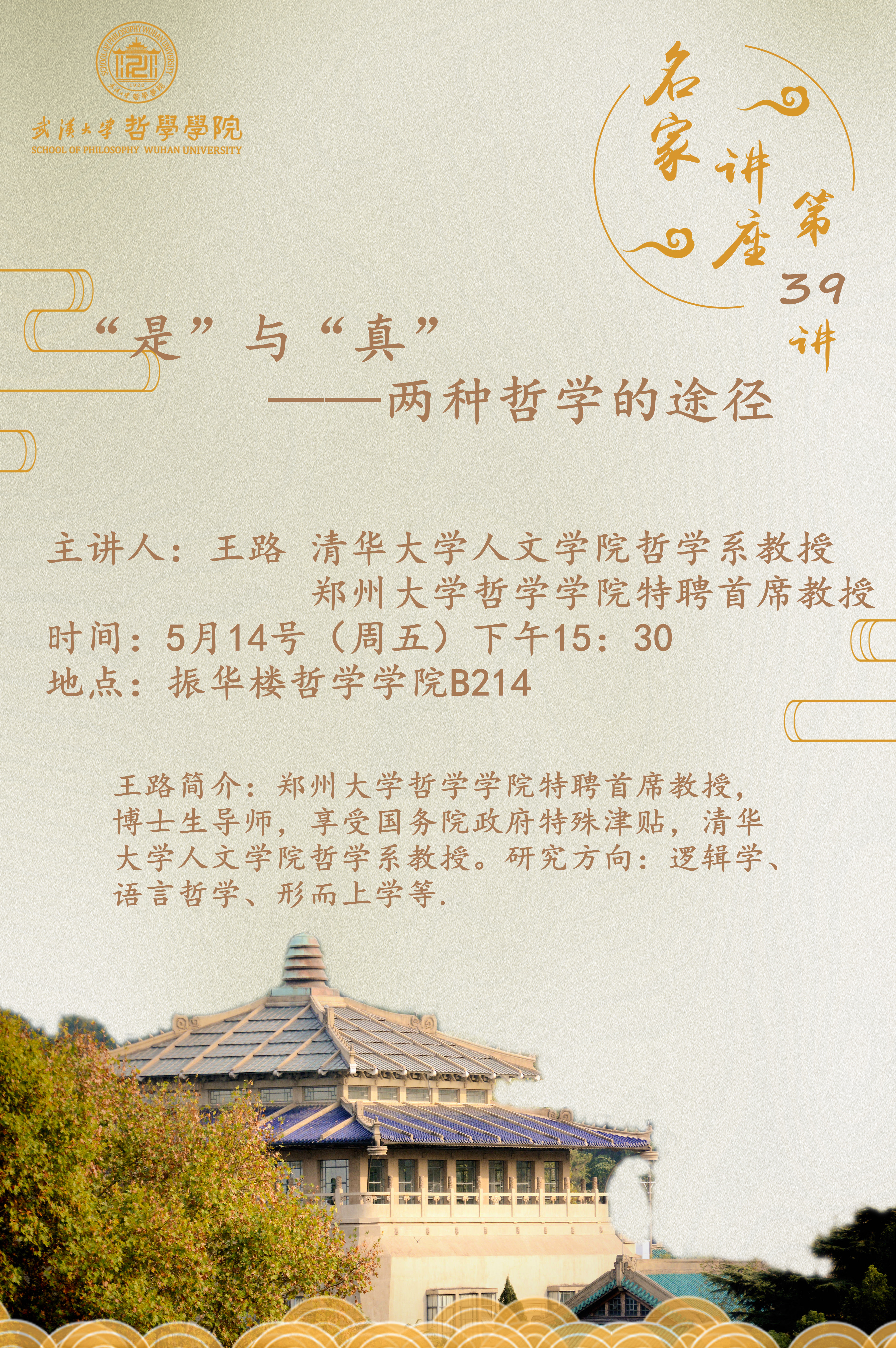 【5月14日】名家讲座第39讲:“是”与“真”——两种哲学的途径