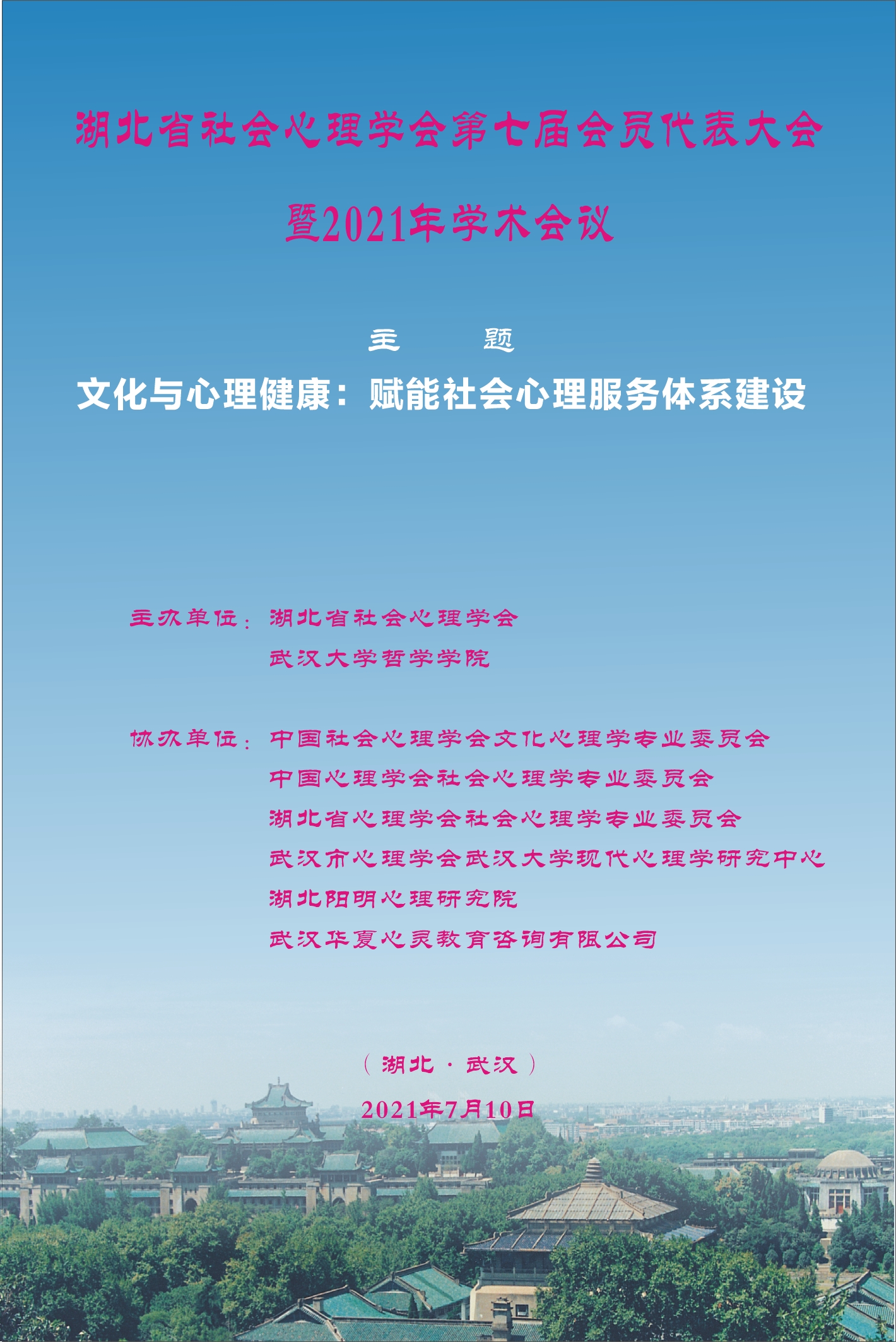 【7月10日】文化与心理健康:赋能社会心理服务体系建设——湖北省社会心理学会第七届会员代表大会暨2021年学术会议