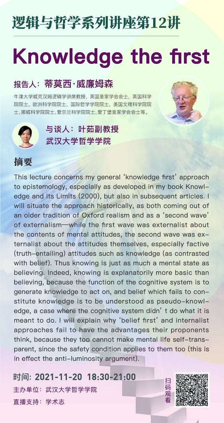 【11月20日】Knowledge the flrst——逻辑与哲学系列讲座第12讲