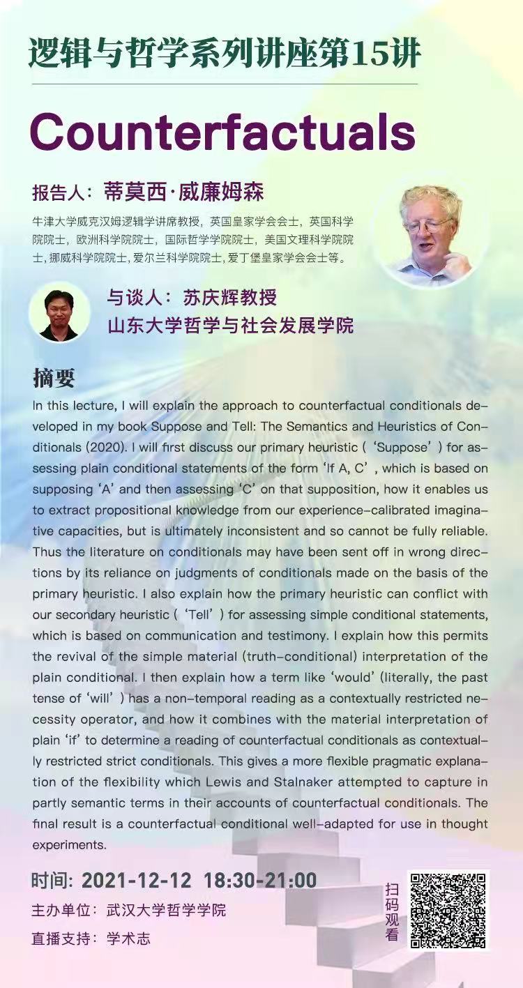 【12月12日】Counterfactuals——逻辑与哲学系列讲座第15讲