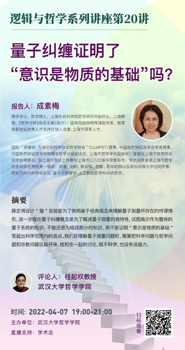 【4月7日】量子纠缠证明了“意识是物质的基础”吗?——逻辑与哲学系列讲座第20讲