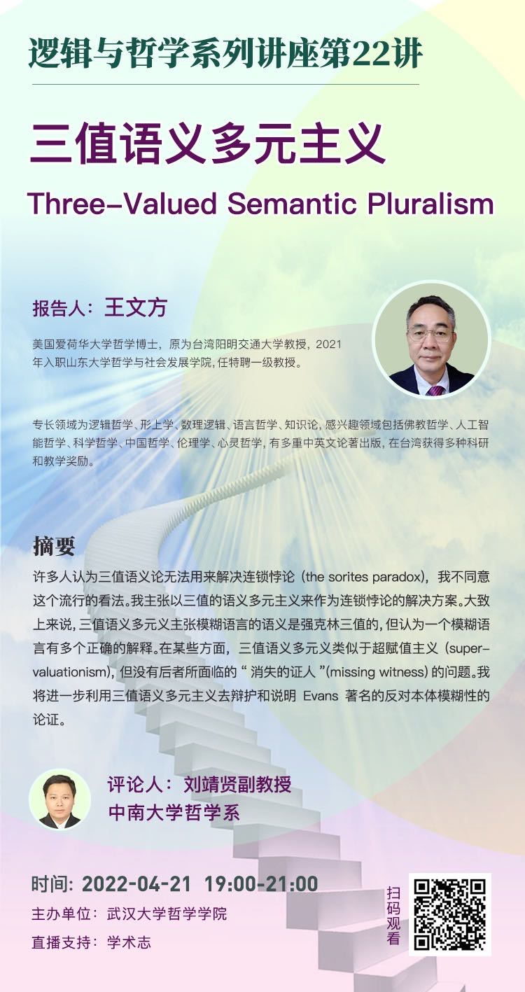 【4月21日】三值语义多元主义Three-Valued Semantic Pluralism——逻辑与哲学系列讲座第22讲