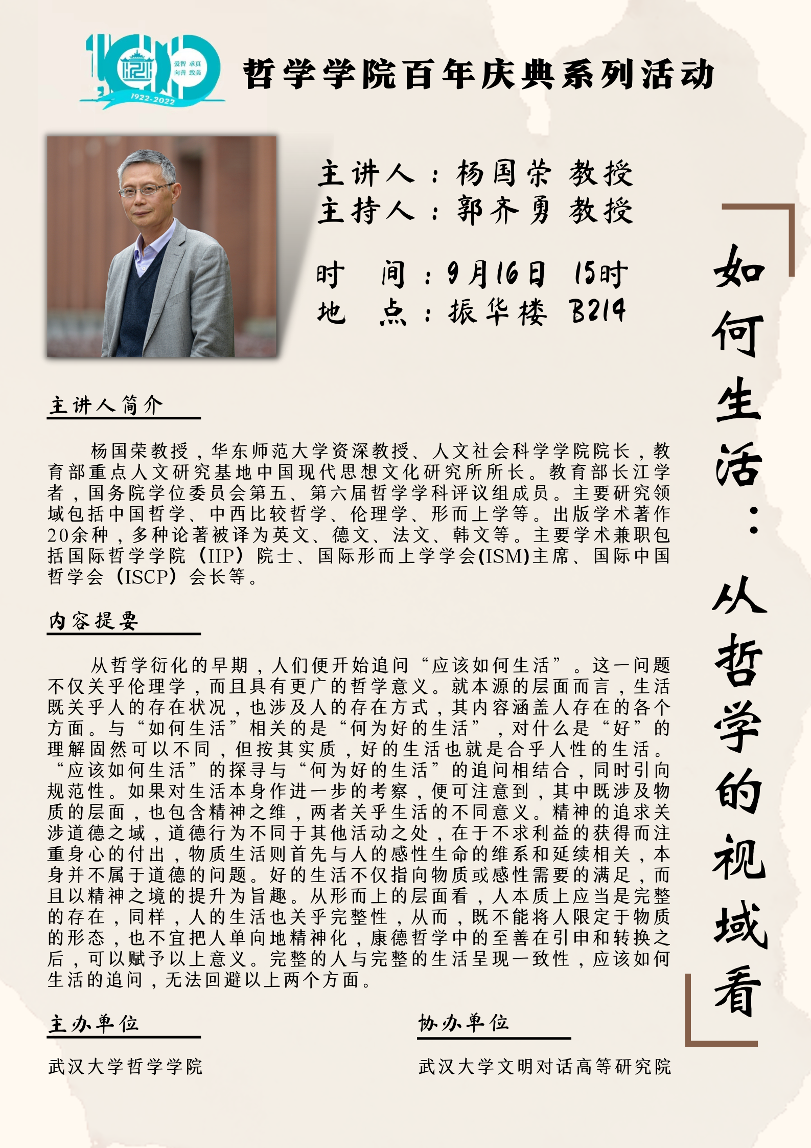 【9月16日】如何生活:从哲学的视域看