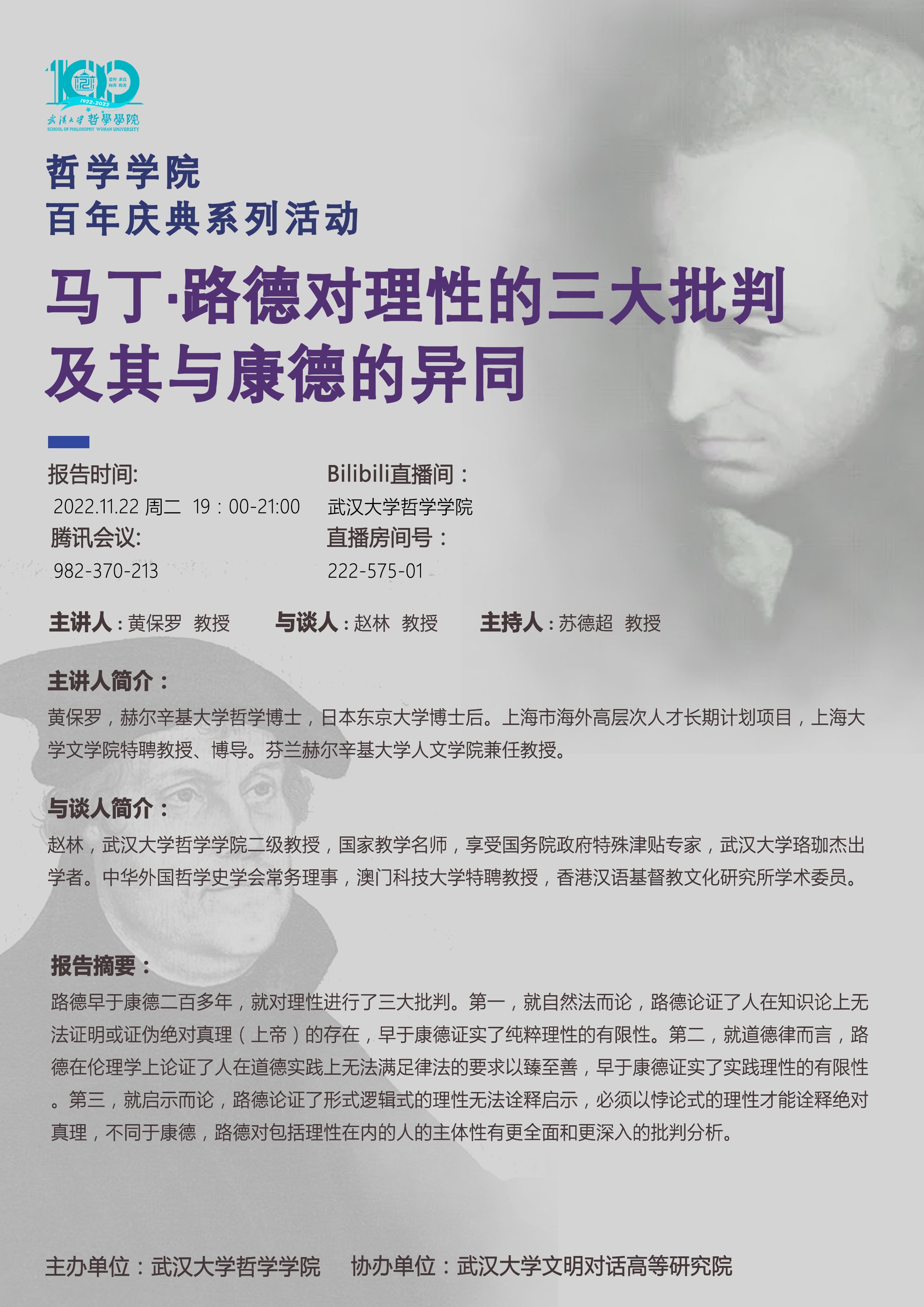 【11月22日】马丁·路德对理性的三大批判及其与康德的异同——五楼自拍 百年庆典系列活动