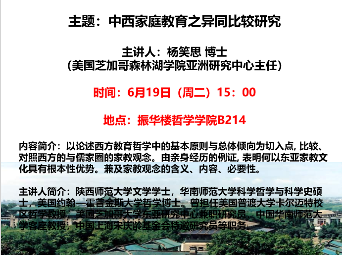 【6月19日】中西家庭教育之异同比较研究