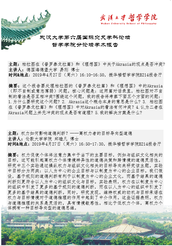 【4月27日】五楼自拍 第六届国际交叉学科论坛——五楼自拍 分论坛学术报告