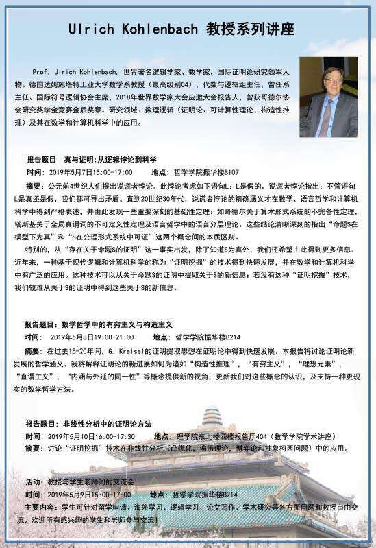 【5月7日——10日】Ulrich Kohlenbach教授系列讲座