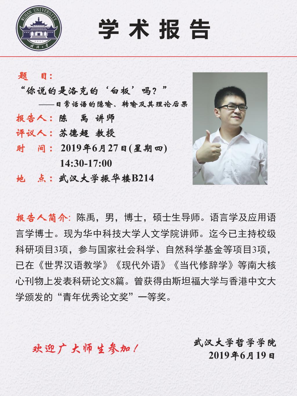 【6月27日】“你说的是洛克的‘白板’吗?”——日常话语的隐喻、转喻及其理论后果
