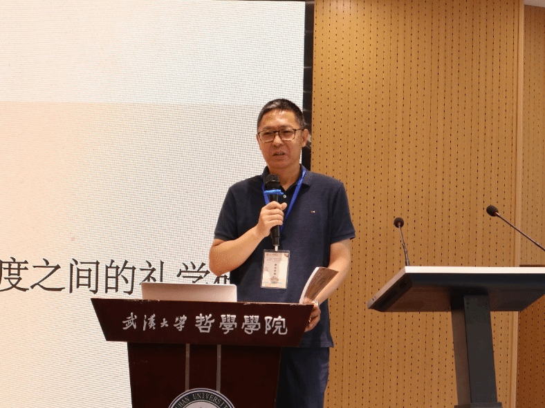 中国社科院哲学研究所刘丰老师作题为“思想与制度之间的礼学研究”的主旨发言。刘老师从自己的研究经历出发,梳理了近30年礼学研究从边缘逐渐兴热的过程。他强调礼学研究一方面不能只关注其思想的一面,即礼作为象征符号背后蕴含的意义,另一方面也不能只关注其制度的一面,即礼作为现实制度在人伦世界中起到的秩序作用。以现代学术的方式来研究礼学,要将思想与制度两个方面结合起来,注意礼学在其间的流动与变化。将礼学所具有的价值规范与现实形态联合考察,可能是一种更为合理、也更有生命力的研究进路。主旨发言结束后,与会学者就经子关系、思想史视野下的礼学研究、礼学研究的下一步方向等问题进行了深入讨论和交流。
