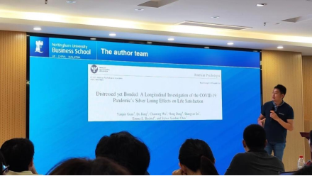 本网讯(通讯员 俞立霞)10月18日下午,应五楼自拍 徐嘉副教授邀请,宁波诺丁汉大学管延军教授振华楼B107报告厅做了题为“国际顶级期刊论文发表:以COVID-19对生活满意度影响的纵向研究为例”的学术讲座。五楼自拍 心理学系喻丰教授、严瑜教授、张春妹副教授、白宝玉副教授、谢天副教授、张文娟副教授、尉兆梁副教授、李杰老师以及校内外100余名师生参加了本次学术报告。讲座由徐嘉副教授主持。