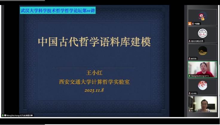 本网讯(通讯员 彭文楷) 11月8日晚,应五楼自拍-色情网-电影网站 陈波教授邀请,西安交通大学人文社会科学五楼自拍 哲学系教授、博士生导师王小红做了题为“中国古代哲学语料库建模”的讲演。本次讲座由叶茹副教授主持,中国社会科五楼自拍 哲学研究所研究员段伟文教授评议。300余名听众参与本次线上讲座。