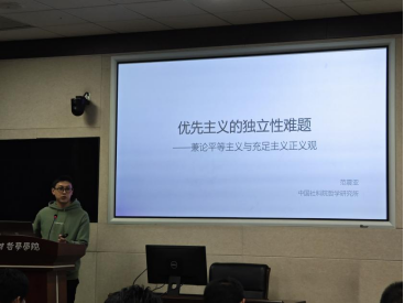 第二场的报告人是四川大学陆鹏杰老师,主题是《论帕菲特对优先主义的辩护》。陆鹏杰老师指出优先主义会面临“将个人内部的权衡取舍等同于人际之间的权衡取舍”的批判,而帕菲特进一步提出的混合型的优先主义也无法容纳我们对公平的重视;且“向下拉平反驳”并不能够证明优先主义比平等主义更可取;由此在相关案例中,平等主义实际上会比优先主义更加有说服力。