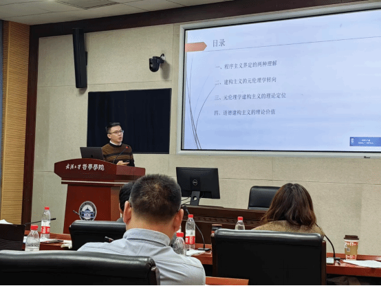 第三场报告由中山大学王东华老师带来,他的报告主要试图回答什么是道德建构主义。报告主要是澄清性工作,在澄清基础上总结对建构主义理解,以此构成对建构主义的辩护。