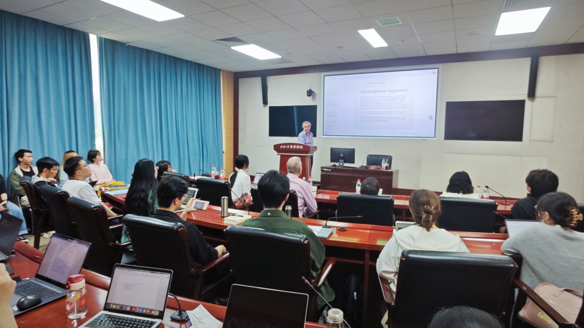 互动环节中,文哲教授就Paul Patton教授、Thomas M.Besch教授、贺念副教授及在场其他师生提出的“康德将知识局限在可能经验范围内是否意味着对外部主义的拒斥”、“显象与物自体是两个世界还是两种视角”、“从现象学角度看,虚拟与真实的区分是否是真问题”、“‘识别论证’预设第一人称视角与第三人称视角的主体的同一性的根据”、“康德的‘视角切换’、普特南的‘世界切换’与后期维特根斯坦的‘面向转换’的比较”等话题进行了热烈讨论。