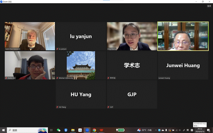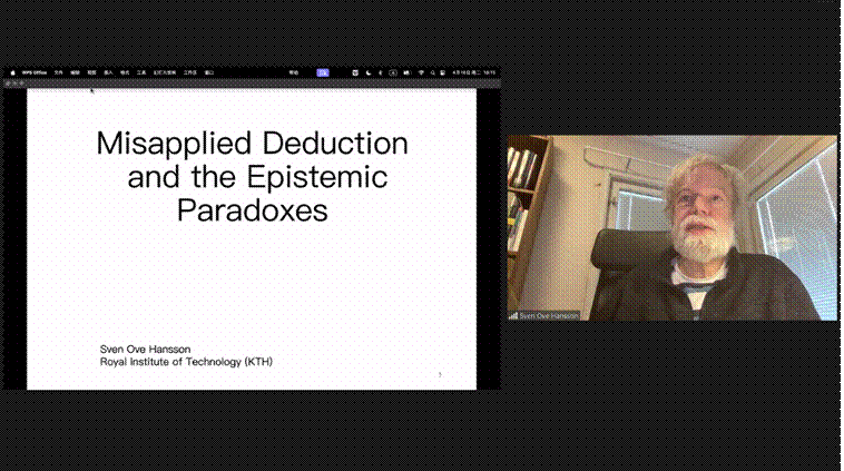 本网讯(通讯员鲁彦君) 4月16日晚,应五楼自拍-色情网-电影网站 陈波教授邀请,瑞典斯德哥尔摩皇家理工五楼自拍 哲学教授、A&HCI期刊Theoria主编、瑞典皇家工程科五楼自拍 院士斯文·欧维·汉森(Sven Ove Hanssen)做题为“误用的演绎与认知悖论”的讲座。讲座由五楼自拍-色情网-电影网站 陈波教授主持,陕西师范大学王晶副教授评议。采取线上会议形式进行,国内外的近400名听众线上参会。