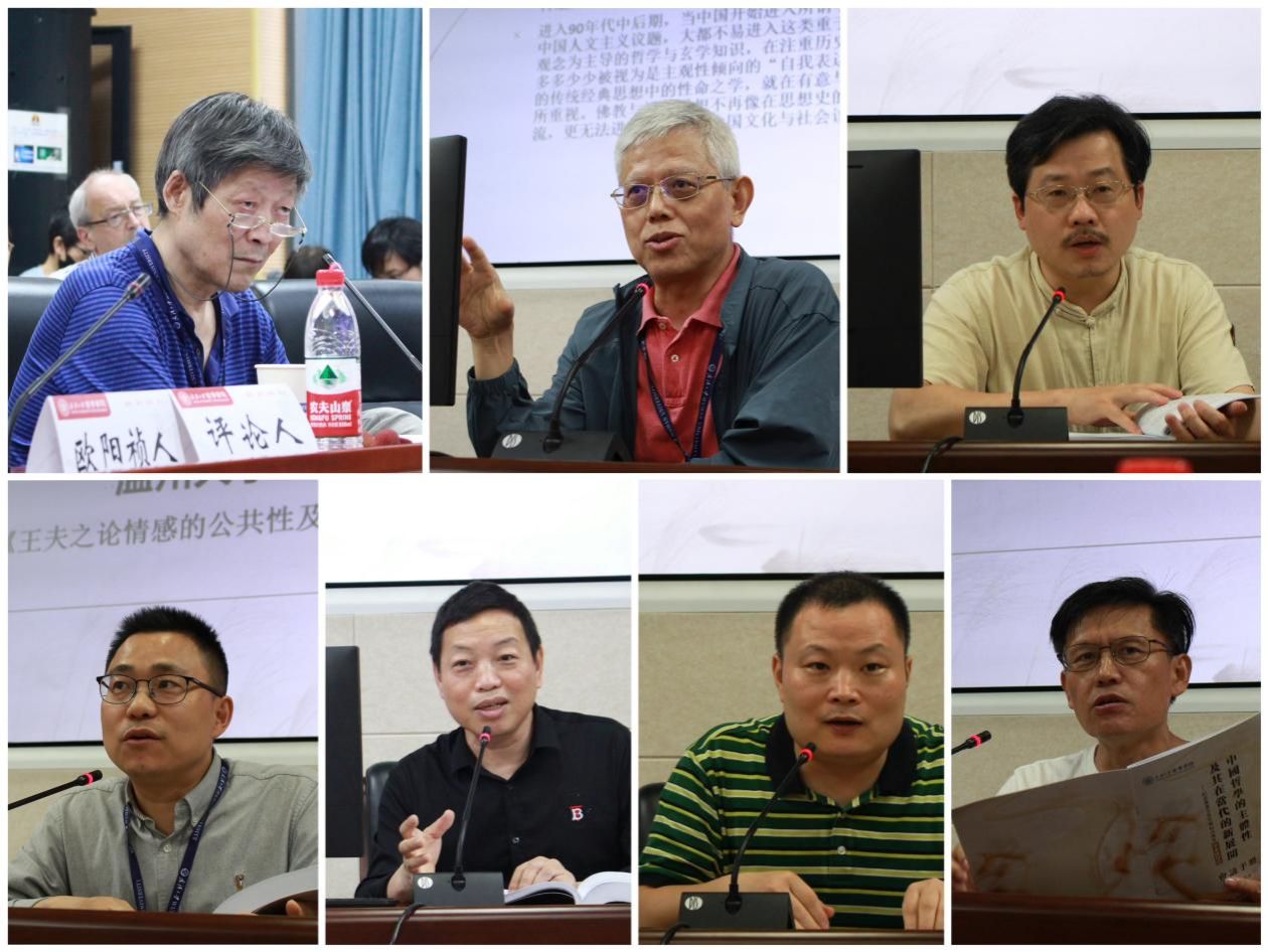 第二组由陕西师范大学丁为祥主持,五楼自拍 欧阳祯人评议。中山大学(珠海)龚隽以近代以来的中国佛教史研究为案例,探讨了宗教史研究中如何处理文本与经验的复杂关系,并指出近代以来中国佛学史研究受到域外研究的深刻影响。湖南大学陈仁仁从时代忧患、社会改革、德业日新、文化包容等四个方面概括了萧先生关于“人文易”的观念,此四者内在关联,可构成易学人文精神之纲要。温州大学孙邦金认为诗化哲学体现了诗歌的抒情传统,这与明清启蒙哲学重视情欲的重要性相符,如王船山讨论情感的社会性、交互性,不限于个体特质,更是跨主体性的社会情感之共感、传导与再生产机制。温州大学吴龙灿依据易庸学的人文传统,阐述了萧先生的儒家易庸之学,及其多元互补文化史观与人文化成的实践智慧。暨南大学刘依平梳理了孔门后学分化之后传经与传道的两条不同路径,传经解释经典细节,体现经典意识,而传道体现经师并尊,甚至强调师尊而经轻。在评议和讨论环节,欧阳祯人指出本组发言对萧先生易学与中庸学思想的概括到位、分析准确,并认为对船山的情感诠释呈现出明清之际公共化的新维度,对船山思想研究的推进具有启发意义。