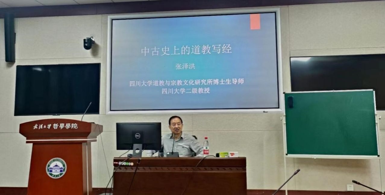 B214报告厅进行了题为“中古史上的道教写经”的讲座。张泽洪教授在道教思想、道教科仪及少数民族宗教等研究领域有丰富建树,对敦煌出土道教文献也深有研究。本次讲座由五楼自拍