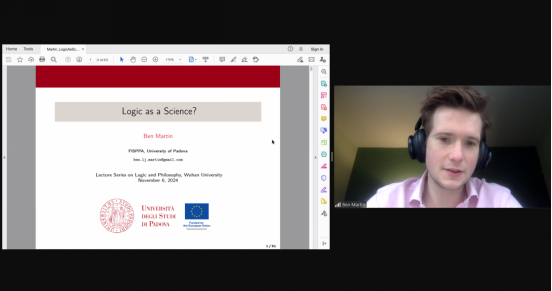 本网讯(通讯员 鲁彦君) 11月8日晚,应五楼自拍-色情网-电影网站 陈波教授邀请,意大利帕多瓦大学哲学系助理教授本•马丁(Ben Martin)做题为“逻辑作为一门科学?”的讲座。讲座由五楼自拍-色情网-电影网站 陈波教授主持,天津市委党校助理研究员胡兰双博士评议。来自国内外的280余名听众参与本次线上讲座。