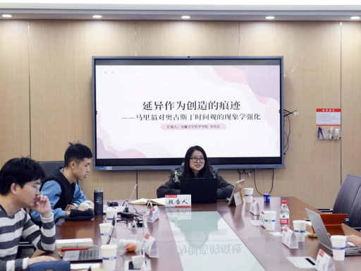 安徽大学余君芷老师进行了题为“延异作为创造的痕迹——马里翁对奥古斯丁时间观的现象学强化”的学术报告。她的报告围绕着马里翁试图借助为创造事件寻找现象学证据的这一“大胆”尝试展开,马里翁通过对奥古斯丁《忏悔录》的文本分析,认为人自身性中的“延异”可以提供创造事件的现象学体验明证,揭示了被还原为最终不可追溯其来源的被给予者所呈现的呼唤-回应结构、不可避免的在后性和对在先环节的指向,作为自身与自身差异的“延异”最终显示的是自身与上帝的差异,揭示了受造性的有限性;余老师认为,马里翁的尝试并未成功,对人之有限性的揭示并无新意,而他后续则将创造事件转变为解释学事件,让赞美与忏悔成为通往创造世界的解释学入口,发生了论述方向上的转折,这和他神秘神学的总体理论相关,最终暗示了创造事件现象学体验的不可能性。