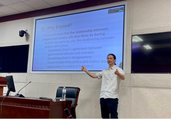 Adam J. Chin博士,毕业于加州大学欧文分校逻辑与哲学科学系,主要从事科学哲学、宗教研究与跨文化理论的教学与研究,尤其关注当代宗教与科学对话的学术路径。在本次讲座中,他指出,当前“宗教与科学”研究存在的不足,即大多数研究集中于特定宗教(如基督教、伊斯兰教、佛教)与特定科学领域(如理论物理、生物进化),而忽视了新兴宗教运动(New Religious Movements, NRMs)与非理论导向的科学(Non-Theory-Oriented Sciences, NTOSs)等领域。