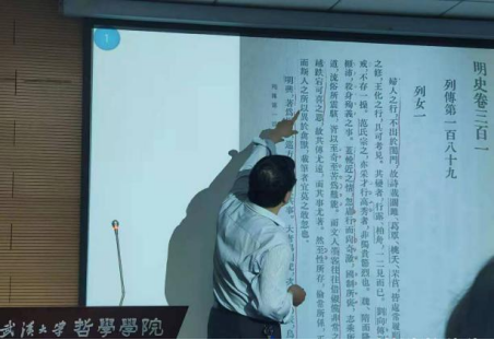 随着幻灯片屏幕上一张张牌坊照片的闪过,在邹元江教授的讲述中,同学们都感到了深深的震撼。在《牡丹亭》诞生的年代,自汉代以来的“贞洁观”、“烈女观”愈演愈烈,诸如“饿死事小,失节事大”等畸形观念盛行于地方。而皇帝朱元璋更亲自对贞洁烈女进行旌表,如此畸形的贞洁观竟然为国制所褒,这无疑将天下妇女推向了被压迫的万丈深渊。