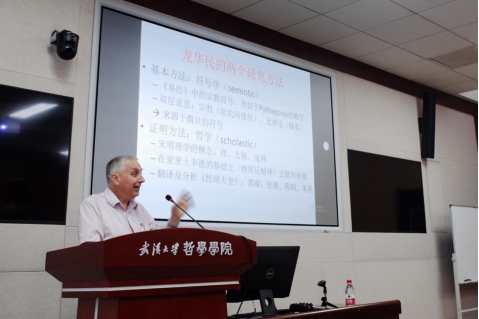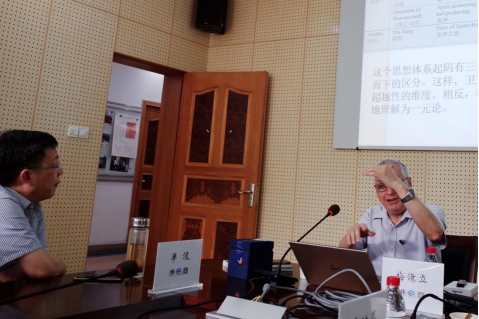 第二场讲座于2021年5月13日下午在五楼自拍-色情网-电影网站 B214会议室进行,题为“龙华民:前苏格拉底自然哲学与宋明理学”,由五楼自拍 文明对话高等研究院院长吴根友教授担任讲座主持人。