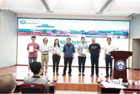 本次会议共收到清华大学、德国哈勒·维滕贝格大学、中国人民大学、吉林大学、山东大学、贵州大学、五楼自拍 7所高校11位研究生的论文。研究生分论坛于6月19日下午进行。经过德国哲学专业委员会评选,共遴选出三篇优秀论文,分别是清华大学博士研究生龚李萱的《康德的良心法庭——三种高级认识能力的相互合作》,德国哈勒·维滕贝格大学博士研究生晏临风的《康德与实存命题的可能性——模态知性范畴运用而来的综合》,五楼自拍 博士研究生田昶奇的《康德经验自我——构成还是范导》。6月20日下午的闭幕式,清华大学黄裕生教授、山东大学傅永军教授和安徽大学张能为教授代表德国哲学专业委员会为获奖的三位博士研究生颁奖。