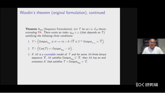 2021年6月15日上午9点, 逻辑与数学基础系列讲座第20讲由瑞典哥德堡大学Ali Enayat教授主讲,报告的题目是:“Flexible-图灵机”。新加坡国立大学数学系杨跃教授主持,新加坡国立大学数学系Tin Lok Wong博士、浙江大学哲学系Zachiri McKenzie博士担任与谈人。讲座先是简要概述了Robinson算术、对角线引理以及哥德尔第一不完全性定理等基本内容,继而引出了Saul A.Kripke 1961年有关Flexible图灵机的开创性工作:令理论T是Q (Robinson算术)的递归可枚举的一致扩充,We是图灵机上可编码为自然数e的程序输出,则存在一个程序e,对任何自然数k,理论T+We={k}是一致的。紧接着,Ali Enayat介绍了W.HughWoodin于2011年引入的一种新型Flexible图灵机,并将其与前面提到的Kripke的工作进行比较和对比。讲座的最后, Ali Enayat教授介绍了自己与Rasmus Blanck合作的成果,对W.HughWoodin的定理做出了改进和增强。